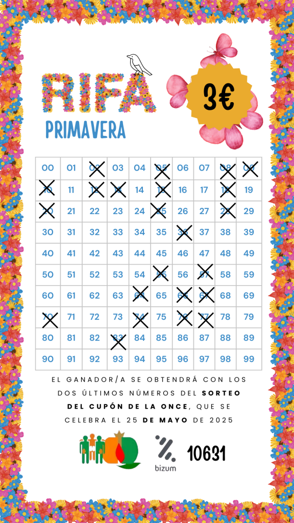 Para colaborar con la rifa, os invitamos a que os pongáis en contacto con nosotros y reservéis vuestro/s número/s.