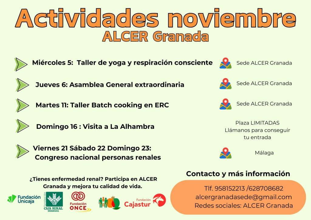 4 de noviembre de 2025Os dejamos todas las actividades que realizaremos este mes de noviembre de 2025. Os invitamos a participar y a cuidar vuestra salud renal con todas estas actividades.