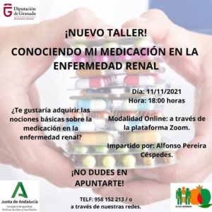 El 11 de noviembre tuvo lugar el taller on-line «Conociendo mi medicación en la enfermedad renal» impartido por Alfonso Pereira Céspedes.